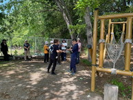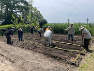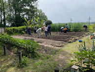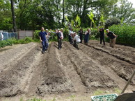 今日はいい天気!!サツマイモの苗植えをするための畝をお手伝いをして下さる保護者の方とつくりました!